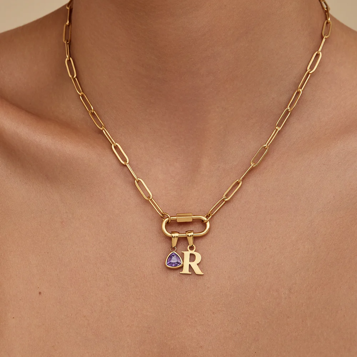 Your story, your way. This statement link chain necklace features a sleek carabiner clasp that holds your chosen initial and a vibrant birthstone close to you. Whether it represents who you are, where you have been, or someone you hold dear, it is designed to be as meaningful as it is beautiful. The modern silhouette pairs effortlessly with everything from everyday staples to special occasion looks, making it a signature piece you will want to wear always.