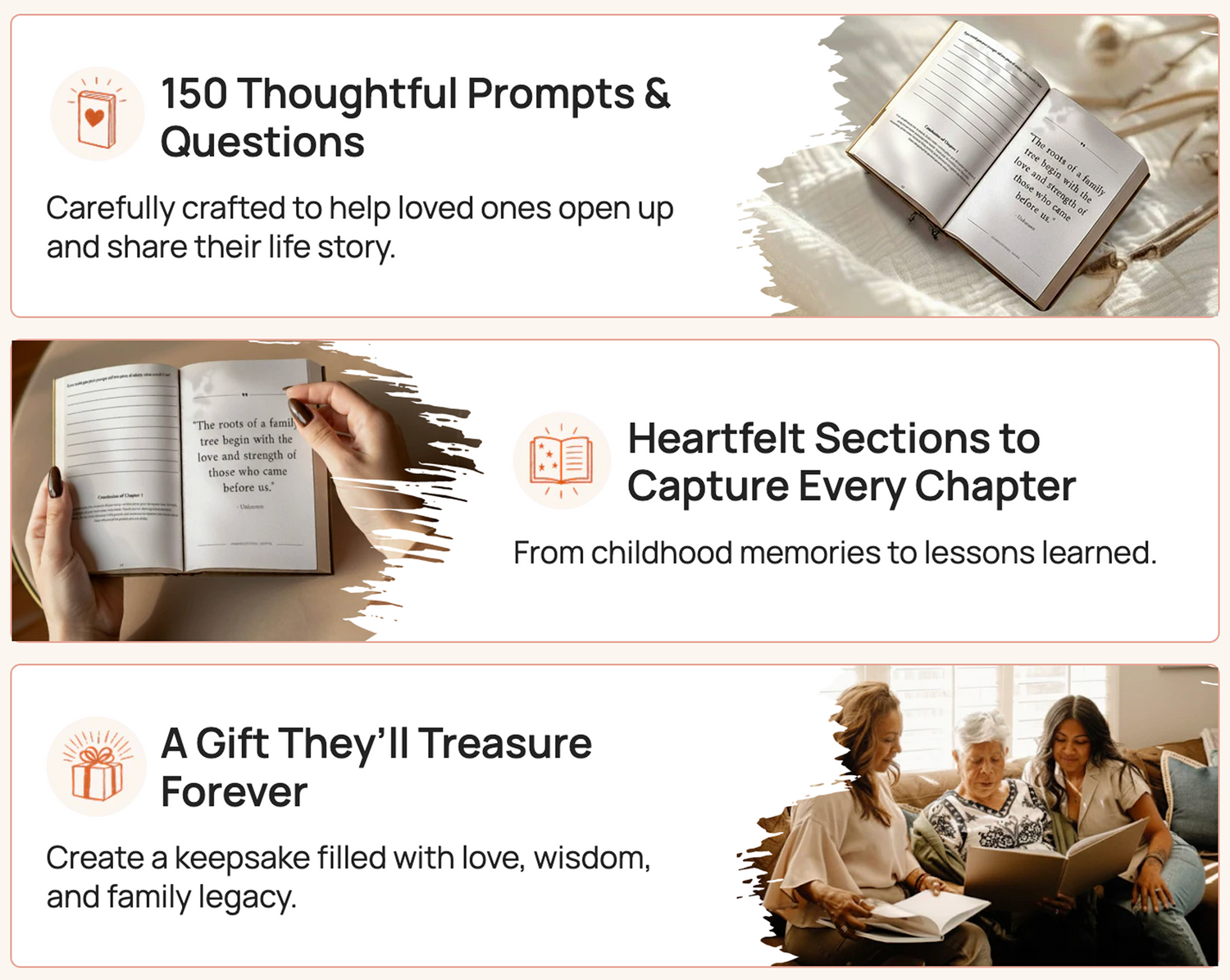 I got the Mom and Dad books, and they’re honestly one of the most meaningful gifts I’ve ever given. The questions are thoughtful and easy to answer, even for parents who don’t normally open up. My mom and dad both loved filling them out!